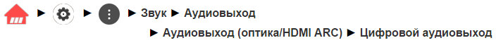 - Выберите Расширенные настройки -> Звук -> Аудиовыход -> Аудиовыход (оптика/HDMI ARC) -> Цифровой аудиовыход.