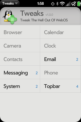 Системные требования: webOS версии 2.0.0 или выше. Все патчи для Tweaks, доступные в Preware на данный момент, поддерживают только webOS 2.1.