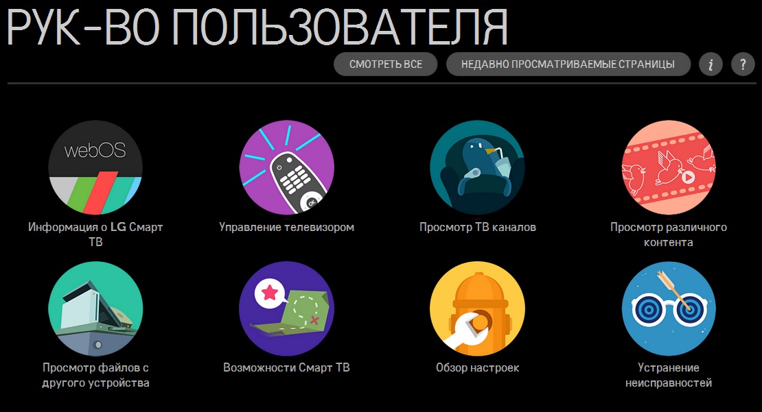 Добавлю, что для разных поколений ТВ LG с webOS существуют свои онлайн-инструкции. В целом они похожи, но у более новых моделей функционал конечно побольше. Кстати, корневая папка у всех инструкций общая http://kr.eguide.lgappstv.com/manual/.