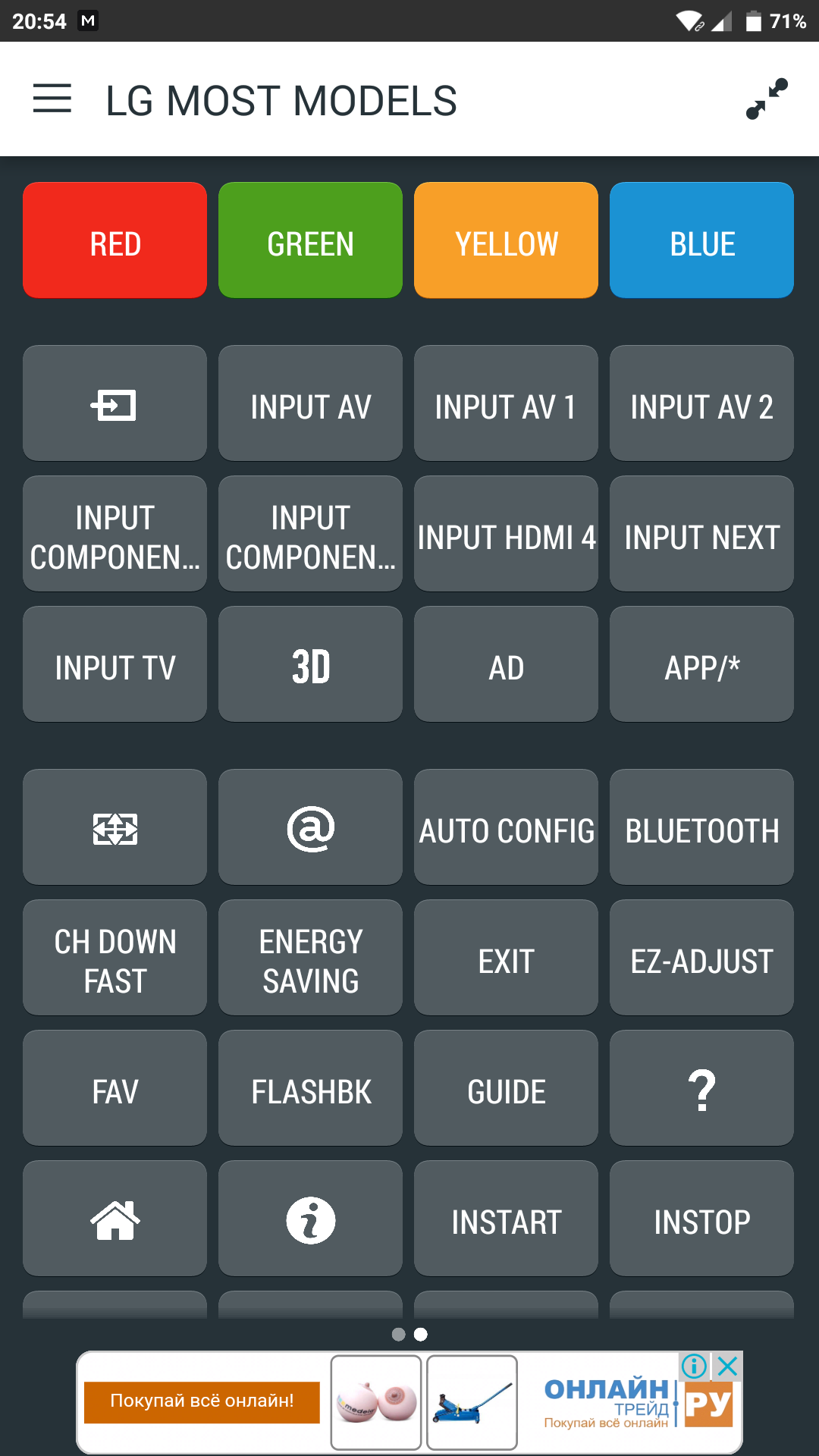 tessi писал(а):Надо было прокрутить пульт вниз, проведя пальцем вверх, и внизу появились бы пять серых кнопок. Нажать надо на кнопку EZ ADJUST.