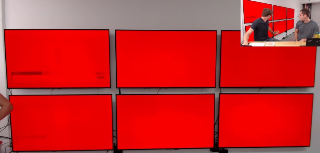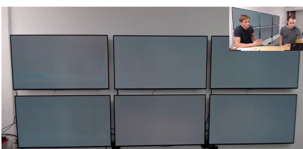 Тв включены по 20 часов в день непрерывно с помощью микроконтроллера. На теликах выводится одна и та же запись, продолжительностью 5,5 часов.