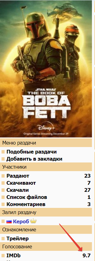 Англоязычные пираты выложили уже 10 разных вариантов Book Of Boba Fett https://www.proxyrarbg.org/torrent/8t1g4fs, наши на кинозале вроде тоже не отстают)) Также можно оценить качество по скриншотам: https://cdn.imagecurl.com/images/869401 ... 194223.png.