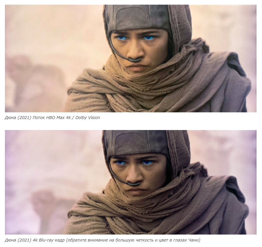 Сравнение качества картинки фильма "Дюна" (Dune, 2021) в форматах 4K Blu-ray и потокового 4K-видео