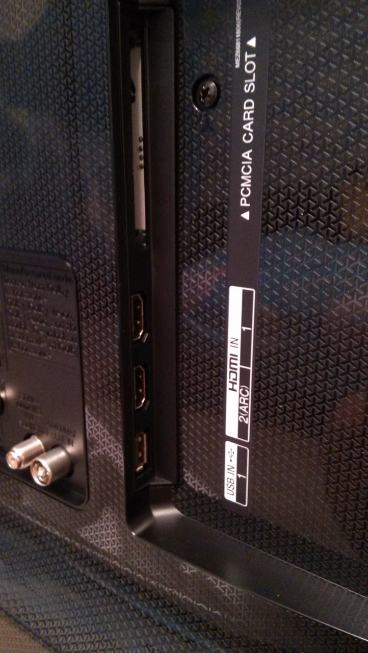 Боковая панель оснащена двумя HDMI входами (один из которых совместим с ARC), одним разъемом USB 2.0 и и слотом условного доступа CI+. Кроме того на борту имеется встроенный Wi-Fi модуль (с поддержкой стандартов 802.11a, 802.11b, 802.11g, 802.11n, 802.11n 5 ГГц, 802.11ac, Wi-Fi Direct).