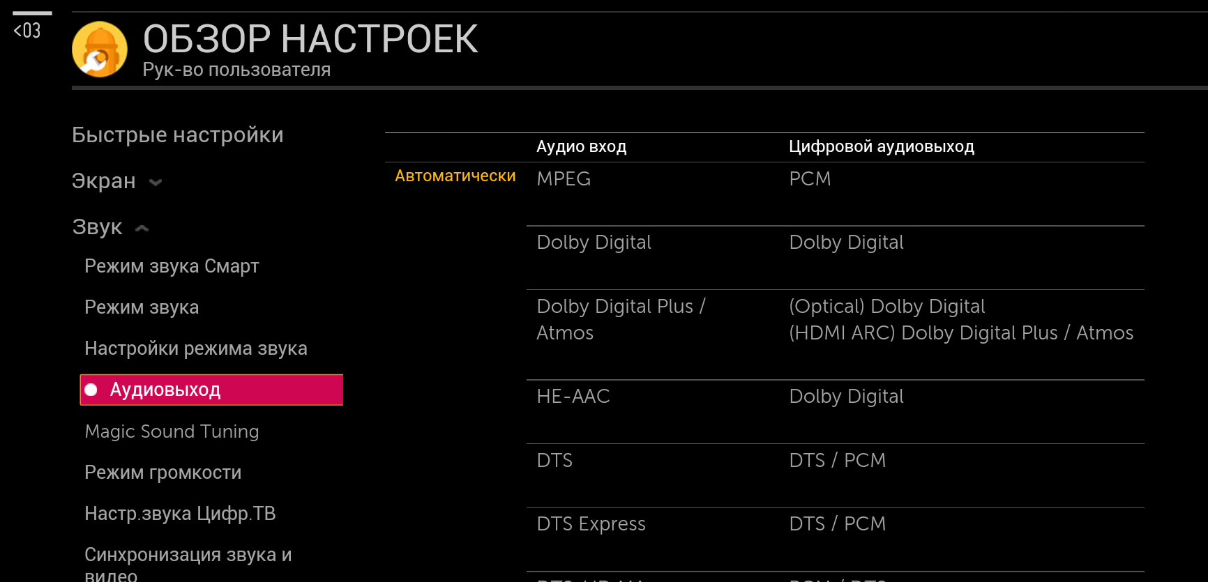 Вывод звука в формате Dolby Atmos (Dolby TrueHD)