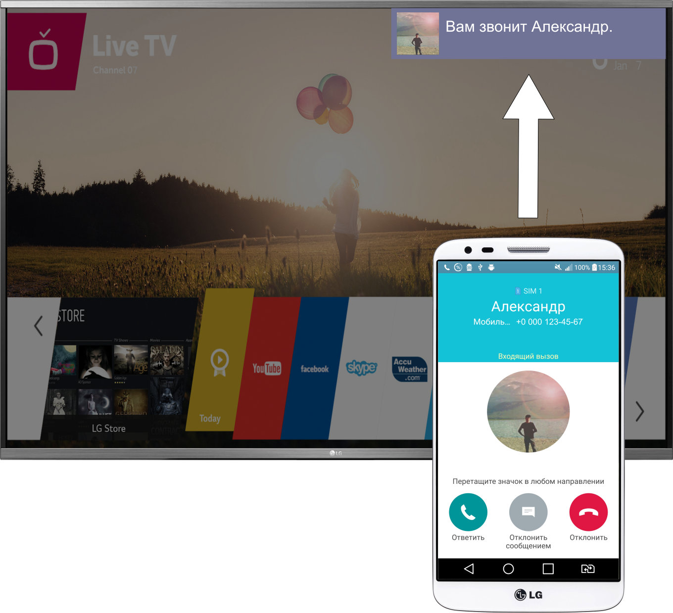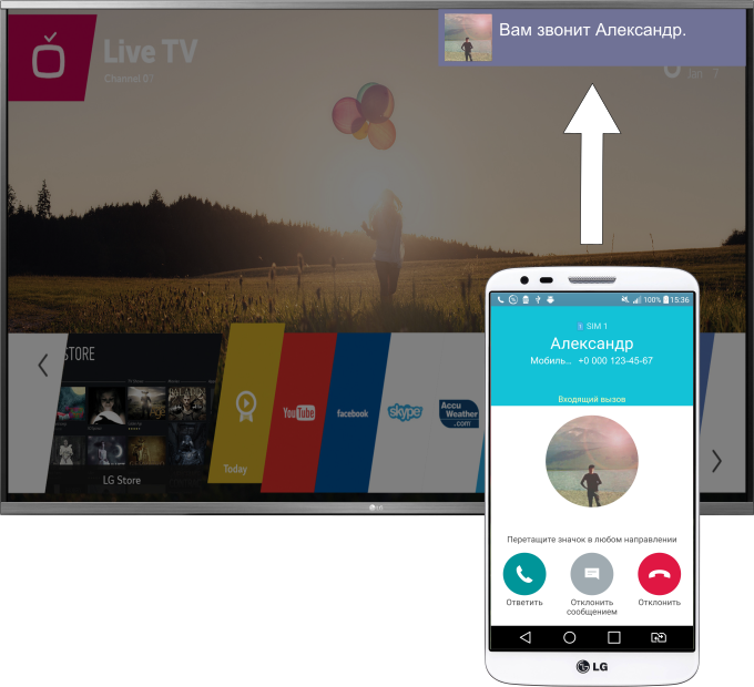 Не беспокойтесь о том, где Ваш телефон, пока смотрите телевизор: благодаря приложению LG webOS TVNotify звонки, SMS, электронные письма, сообщения в социальных сетях и мессенджерах, а также другие события будут отображаться на экране телевизора.
