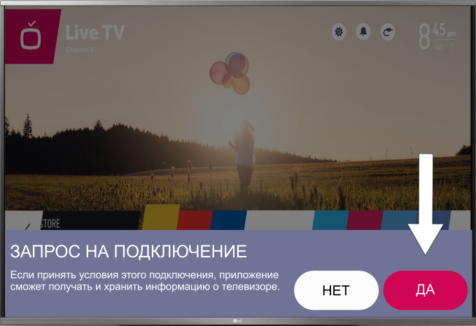 5. При первом подключении нужно подтвердить запрос на ТВ.