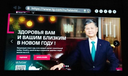 И дальше ещё хуже. Хочу выключить это кривое переворачивание, открываю браузер для ввода заветной строки, но браузер не управляем, курсора не появляется, на кнопки не реагирует, но при этом сам открывает страницу LG с поздравлением...