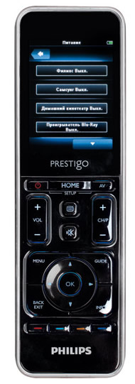 Начните управление всеми устройствами касанием одной кнопки вместо управления каждым устройством по отдельности. Просто нажмите кнопку действия, например "Просмотр фильма", и пульт Prestigo автоматически включит различные устройства, такие как телевизор, DVD-проигрыватель и систему домашнего кинотеатра — все необходимое для просмотра фильма. - Сенсорный экран для легкой навигации