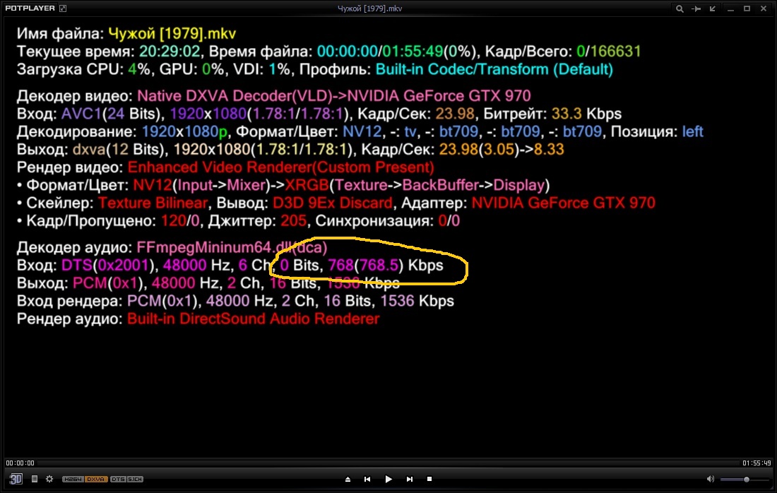 - По Вашей ссылке Назад в будущее-2 DTS- звук закодирован с 24-битным разрешением потока, есть проблемы с воспроизведением (по Вашему заявлению)