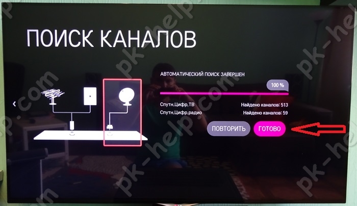 В итоге вы увидите количество найденных каналов и радио, теперь можно нажать "Готово".