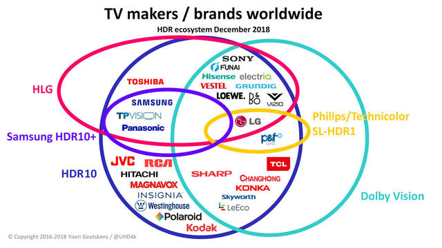 Вы, вероятно, не так поняли мою мысль. Производители ТВ не являются определяющими игроками на рынке продвижения DV, и не смогут принять единолично (без иных участников) решение "о блокировке возможности воспроизведения DV в mp4-форматном потоке". Ведь сама по себе техническая возможность (воспроизведение с DV-диапазоном) требует реализации лишь при условии, что она необходима пользователям. и, следовательно, они согласны доплачивать за эту возможность. И если это действительно формат выдачи потоковых данных с глобальных стриминг-сервисов, то без их одобрения и участия это сделано не будет, т.к. пользователи не смогут пользоваться предоставленной возможностью, стриминг-сервисы не смогут продавать такой контент, а значит не будут покупать его у производителей. Доля прибыли от продаж специализированных UHD BD-плееров и физических носителей с контентом соответствующего качества (дисков) крайне малозначительна в сравнении с доходами в сфере онлайн-потребления.