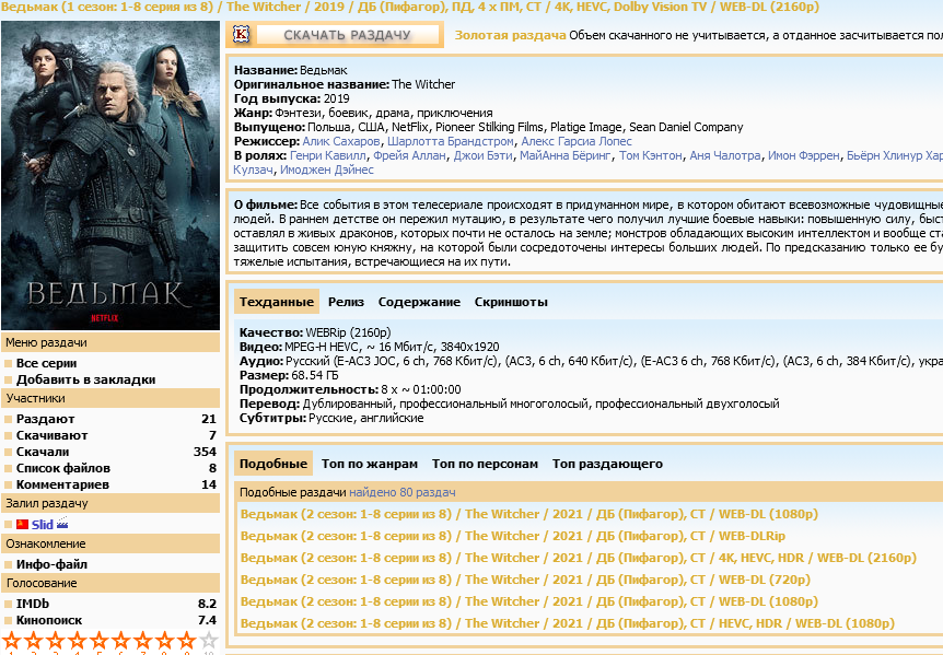Screenshot 2021-12-22 at 12-05-58 Ведьмак (1 сезон 1-8 серия из 8) The Witcher 2019 ДБ (Пифагор), ПД, 4 x ПМ, СТ 4K, HEVC, [...].png (238.95 КБ) Просмотров: 2120