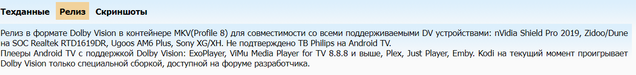 Pavel55155 писал(а):Подскажите, есть ли какие то телевизоры, способные воспроизводить Dolby Vision в контейнере MKV без танцев с бубнами (перекодирования, использования ТВ приставок типа Nvidia Shield и т.д.), т. е. достал ТВ из коробки, вставил жёсткий диск, включил фильм 70 ГБ в 4K Dolby Vision и все заработало сразу?