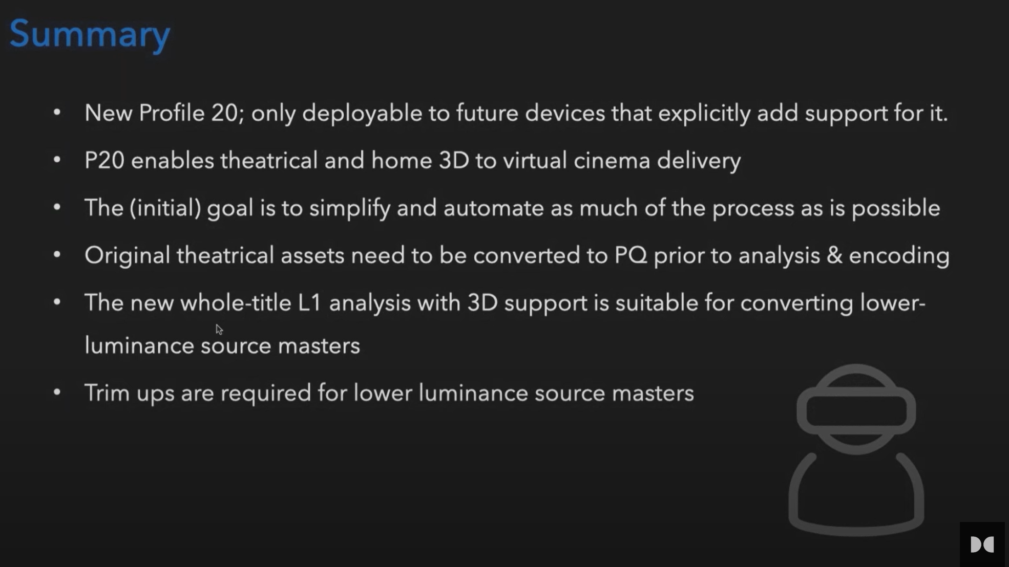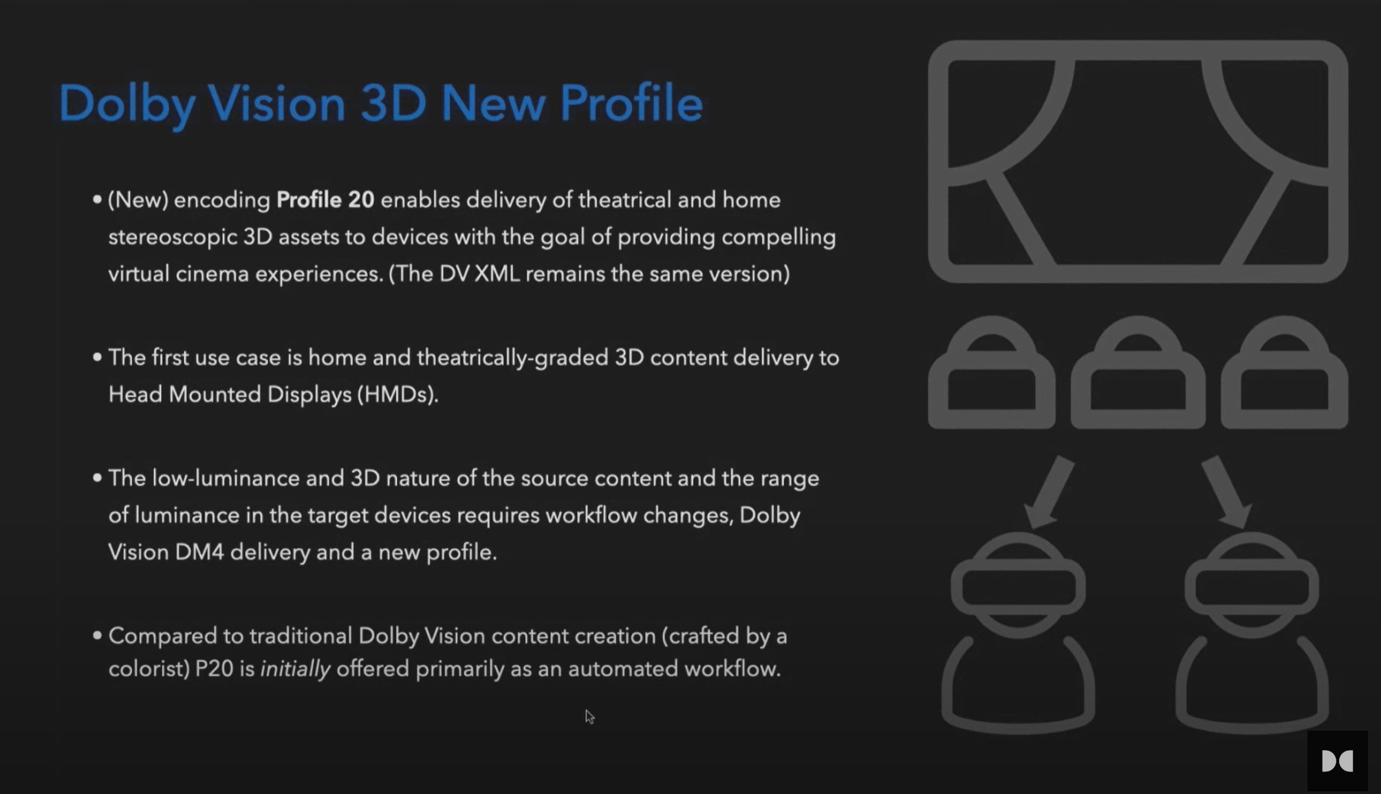 20 профиль предназначен для использования в 3D-стереоскопических дисплеях с аппаратным ускорением декодирования (Dolby Vision 3D profile for Head Mounted Displays)
