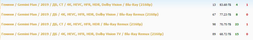 Общее Полное имя: Z:\Gemini.Man.2019.BDREMUX.2160p.DV.TV.HDR.mp4 Формат: MPEG-4 Профиль формата: Base Media / Version 2 Идентификатор кодека: mp42 (mp42/dby1/isom) Размер файла: 68,7 Гбайт Продолжительность: 1 ч.57 м. Общий поток: 84,1 Мбит/сек Дата кодирования: UTC 2020-01-05 18:29:53 Дата пометки: UTC 2020-01-05 18:29:53