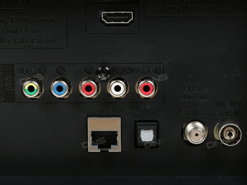 Задняя панель телевизоров LG 49LJ540V и 55LJ540V оснащена следующими интерфейсами: один вход HDMI, 2 антенных (спутник/кабель) входа, компонентные входы по видео/аудио и 1 порт LAN. Что касается аудио, то на этой же панели расположен только оптический аудиовыход, а стереовыход для наушников и выход аудио RCA (тюльпан) на два канала, как в моделях 2016 года, отсутствуют.