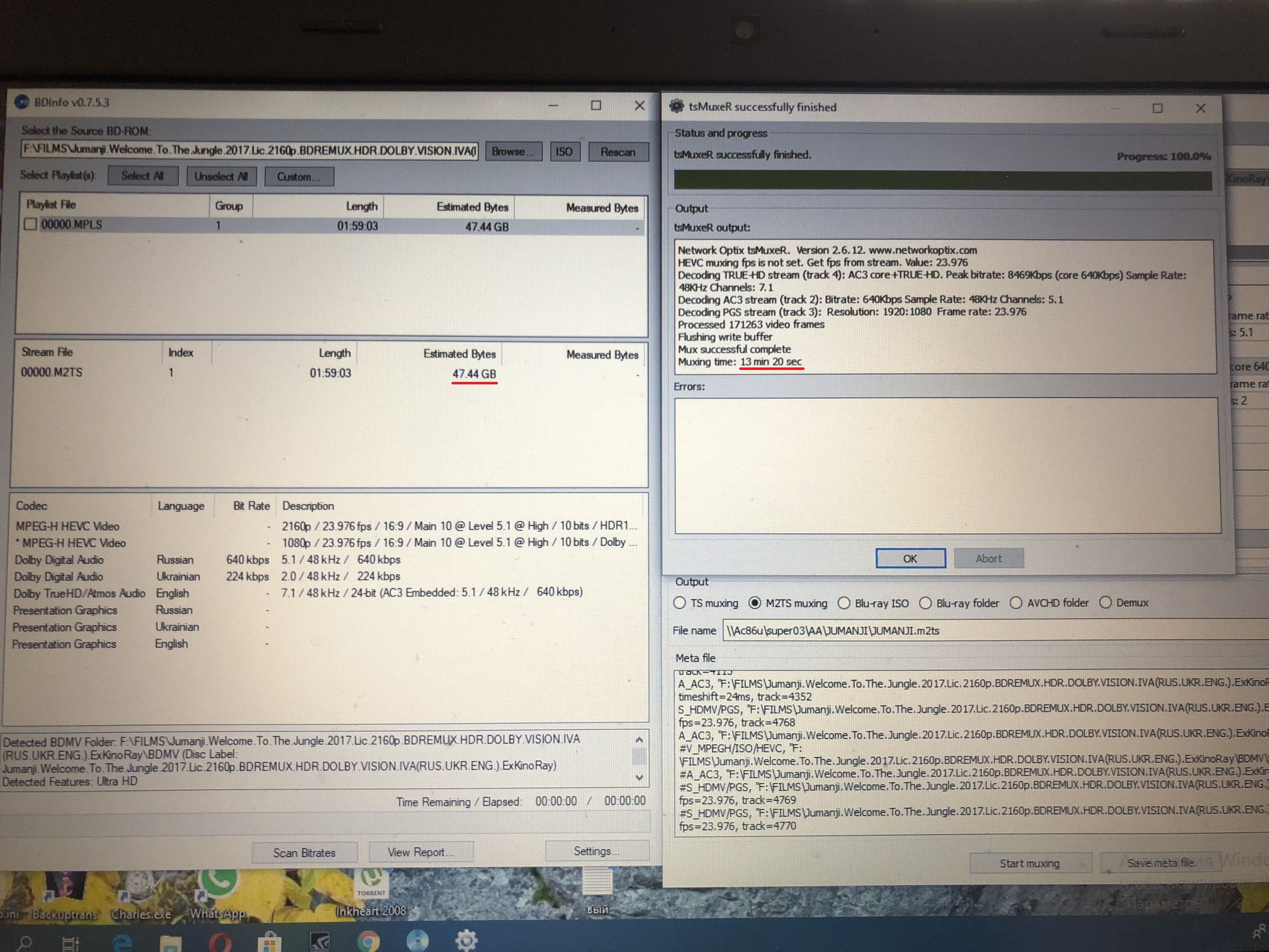 Предположение скорее всего правильное, у обоих вышеуказанных раздачах видеопоток VC -1. Походу плеер - ТВ в контейнере M2ts, его не поддерживает. Хотя при конвертации mkvToolNix-ом в MKV без изменения каких либо данных, плеер ТВ воспроизводит "VC -1" на Ура... Спасибо за данную наводку!!! Может кому пригодится: Конвертация mkvToolNix-ом решает вопрос проигрывания Blu-ray фильмов с проблемным M2ts на 5+. Конвертация tsMuxeR-ом происходит в 2 раза быстрее: Джуманджи Зов джунглей, прошла за 14 минут:
