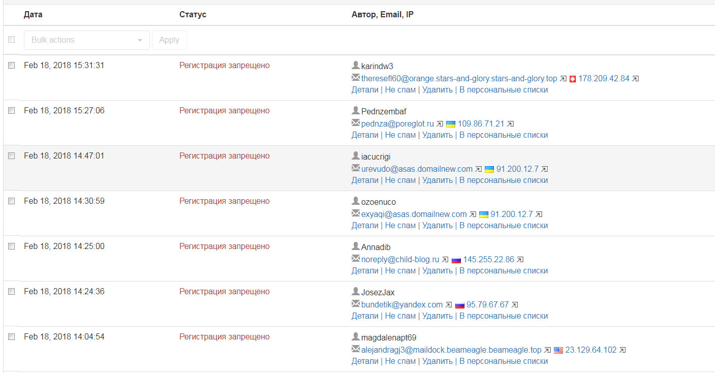 В связи с наплывом спамеров в последние дни, сегодня на форуме установлена система для борьбы с ними. Теперь регистрация и публикация сообщения проверяются на принадлежность к черным списка email и слов. В ближайшее время будем смотреть за эффективностью ее работы.