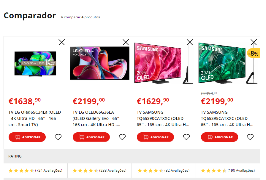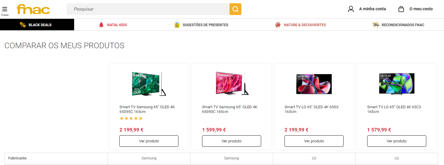 fnac, worten, mediamarkt... Цены одинаковые. На примере 65 дюймов - G3 и S95C - 2200 Евро, С3 и S90C - 1600 Евро.