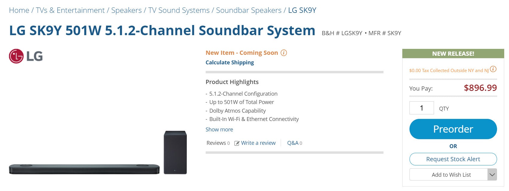 Предзаказ LG SK9Y можно оформить на сайте американского ритейлера B & H Foto & Electronics: https://www.bhphotovideo.com/c/product/ ... _with.html (цена 896.99 долларов)