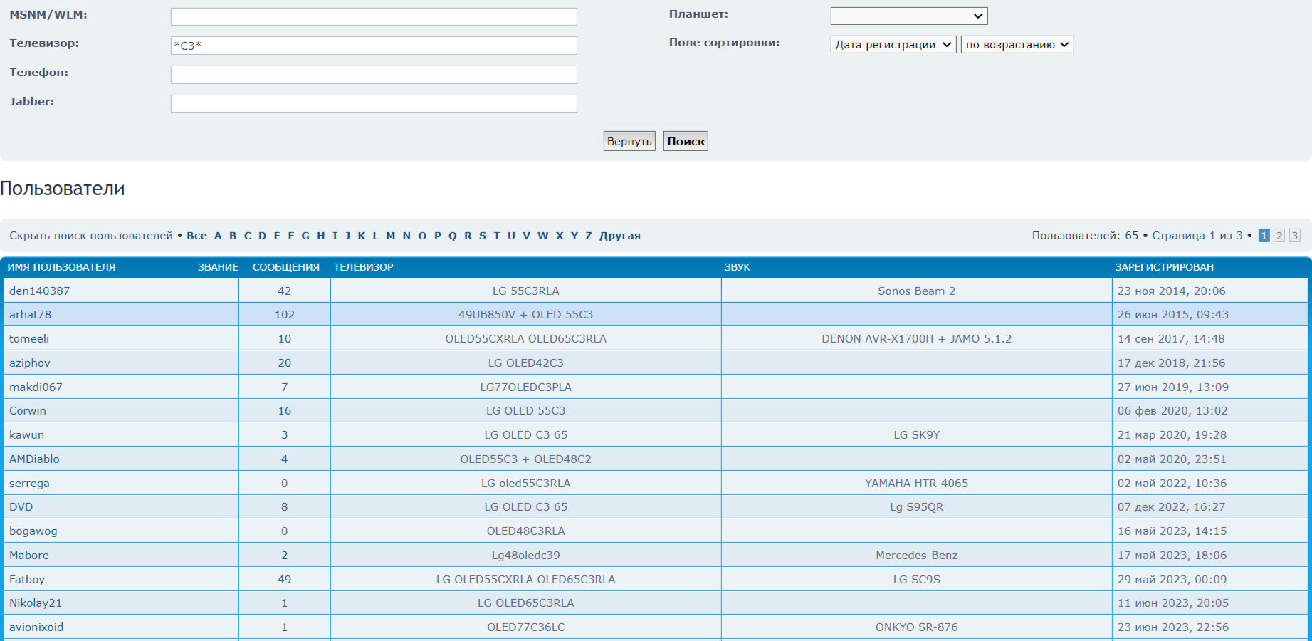 Более 65 владельцев C3/G3 на форуме, если есть желание уточить у них - можете зайти сюда https://webos-forums.ru/memberlist.php?mode=searchuser, ввести в поле "Телевизор" *C3* и там будет список всех пользователей форума, у кого этот ТВ прописан в профиле.