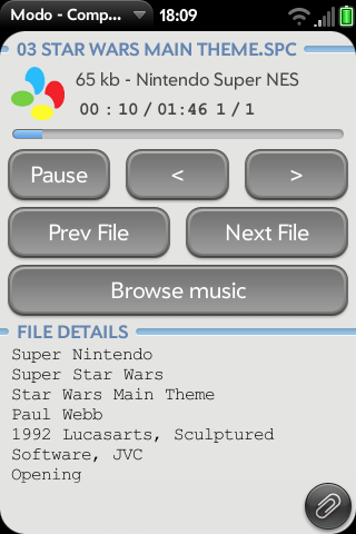 Modo - плеер трекерной музыки (да, да, те самые восьмибитки), портированный с PSP. Подробнее о чиптюнах можно прочитать на википедии: http://ru.wikipedia.org/wiki/Трекерная_музыка