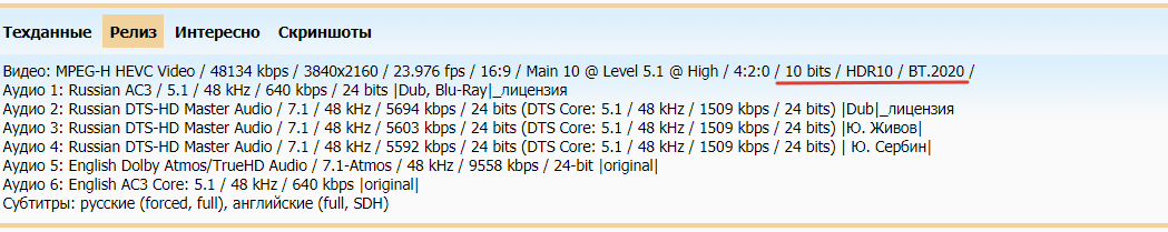 Примеры обозначениий, применяемые в названии торрент-раздач с HDR-контентом на адекватном источнике, тут 4K фильмы в лучшем качестве (присутствует эта аббревиатура, но утверждать, что так на всех трекерах не буду) Кроме того, это можно увидеть (у большинства релизеров и опять же, на адекватных трекерах) на вкладкеили более развернуто кликнув на, где будетИ второй вопрос, как понять, какие фильмы в HDR (в онлайн кинотеатрах и на торрентах), там где-то должно быть написано об этом (кроме ютуб)?