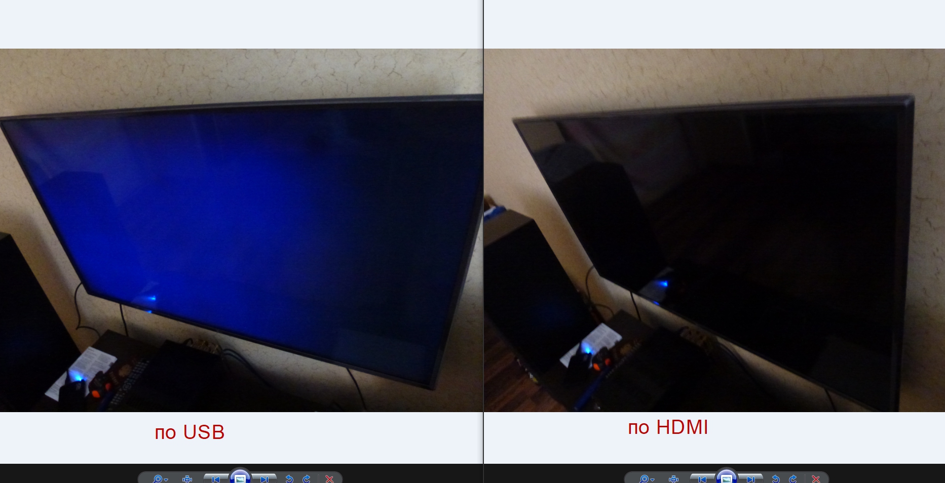 Подключите по HDMI на телевизоре активируйте HDMI ULTRA HD Deep Colour, в настройках адаптера выберите режим управления цветом с помощью видеоадаптера, поставьте RGB полный и динамический полный или ограниченный и не будет у вас такой синевы, еще раз выкладываю пример на фото. https://yadi.sk/i/7s3m0jBbI0NuPQ У меня кстати по USB вообще весь экран полосатый, пс4 нет, так что, предлагая просто подключить к компу и по тестить, полос быть не должно.