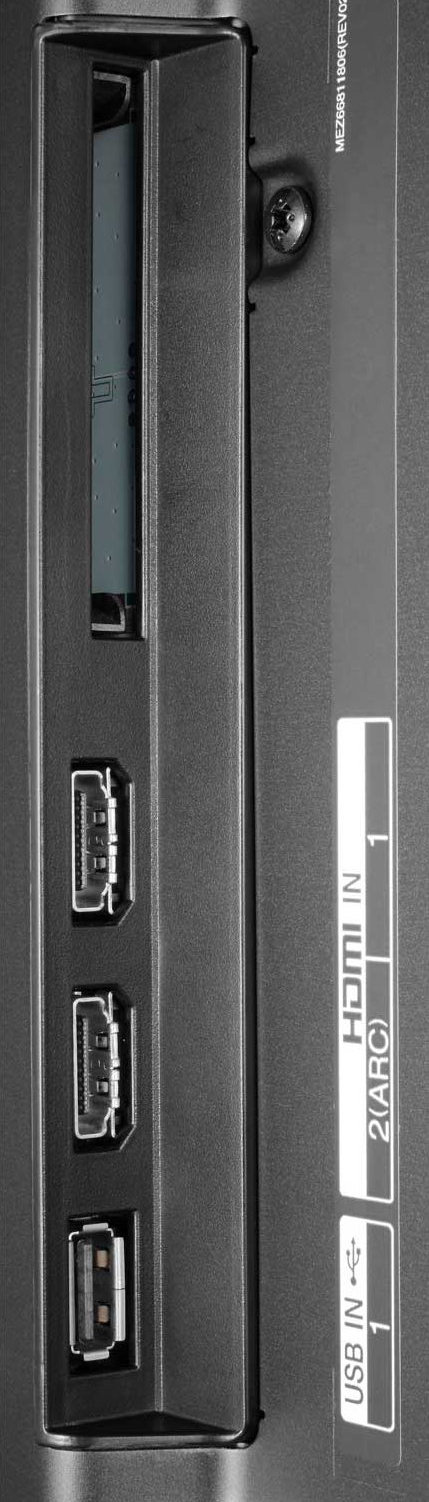 Боковая панель оснащена двумя входами HDMI v2.0 (один из которых совместим с ARC), одним разъемом USB 2.0 и слотом условного доступа CI+. Кроме того на борту имеется встроенный Wi-Fi модуль (с поддержкой стандартов 802.11a, 802.11b, 802.11g, 802.11n, 802.11n 5 ГГц, 802.11ac, Wi-Fi Direct).