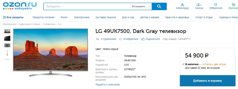 В настоящий момент телевизоры серии LG UK7500 нельзя найти в интернет-магазинах ни по каким ценам