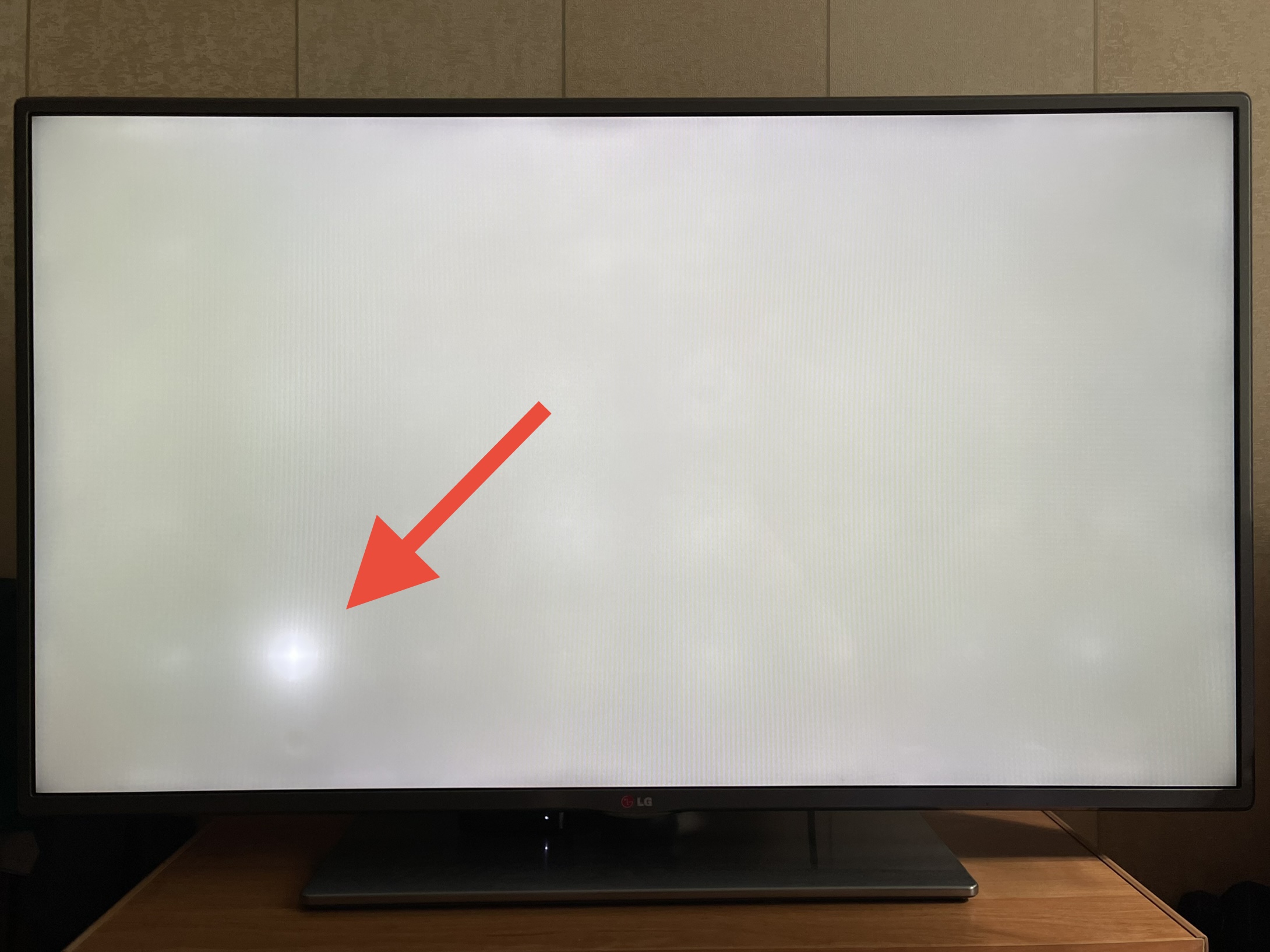 Телевизор LG 42LB569V. Малолетний сын постоянно стучит по экрану, когда смотрит мультики. Достучался до того, что отвалилась линза подсветки — появилось яркое пятно.