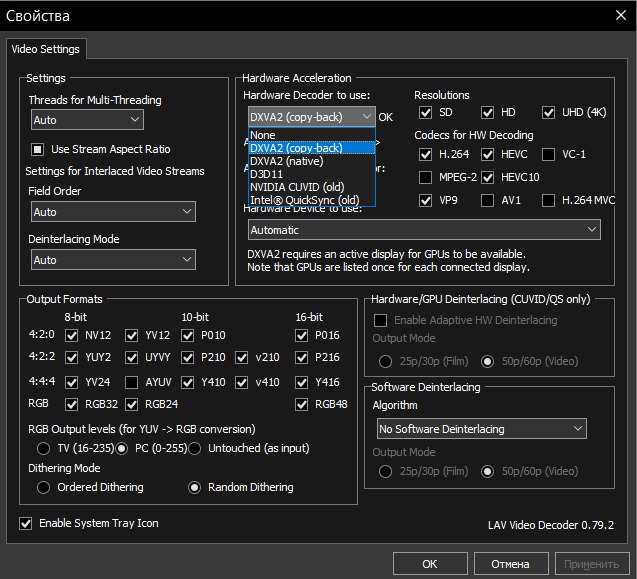 Выбирайте dvxa-copy back или d3d11 native или d3d11-copy back