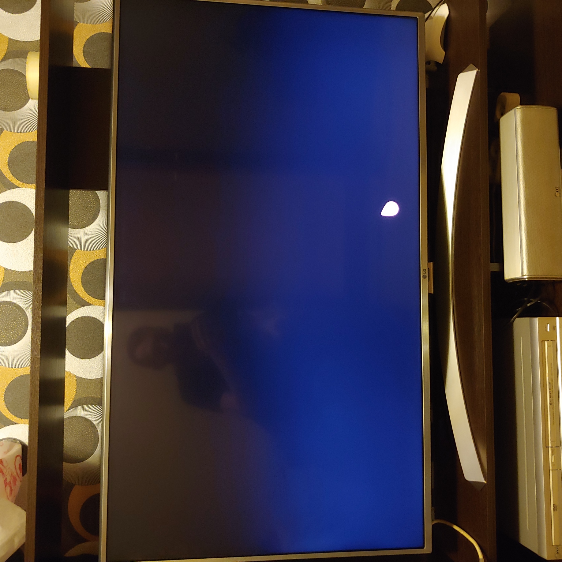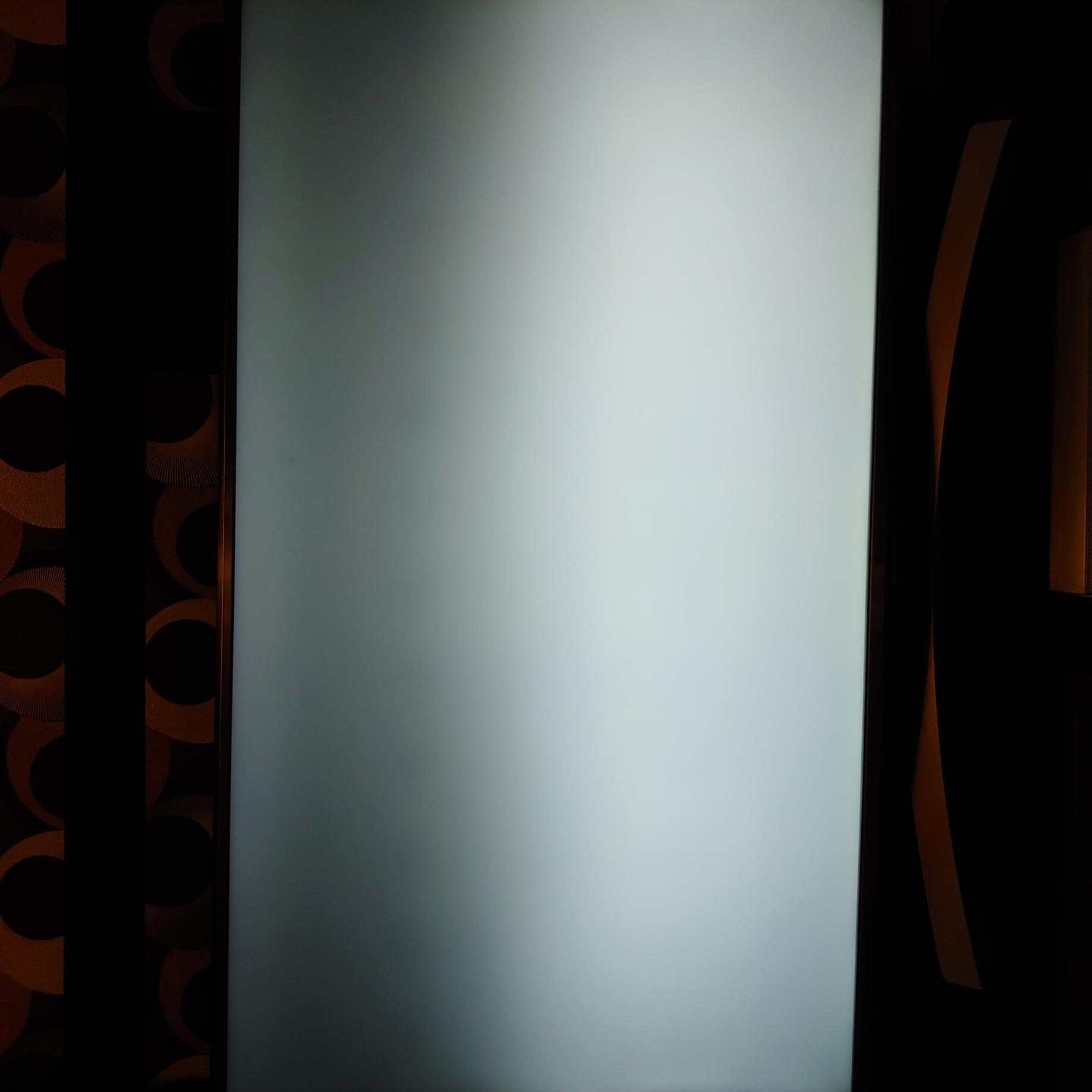 На экране вот такие засвеченные пятна. В режиме изображения на тёмных сценах они тоже просвечивают. HDR отключен, яркость 50%.