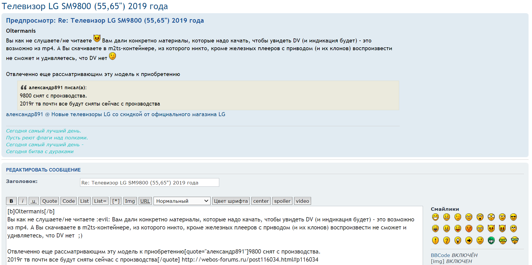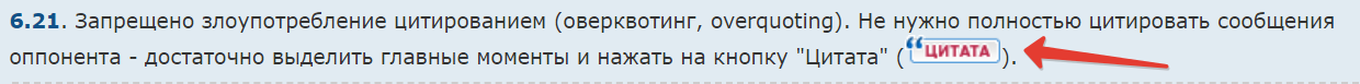 Не нужно полностью цитировать сообщения оппонента - достаточно выделить главные моменты и нажать на кнопку "Цитата".