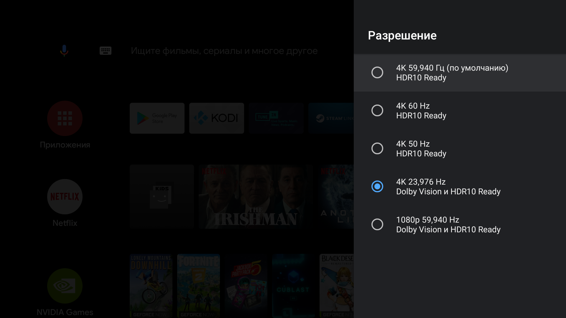 Не понял немножко, там это где? На Shield? Есть все и HDR и DV, но это зависит от телевизора к которому подключена приставка. Она считывает спецификации телевизора и предлагает варианты вывода на экран.