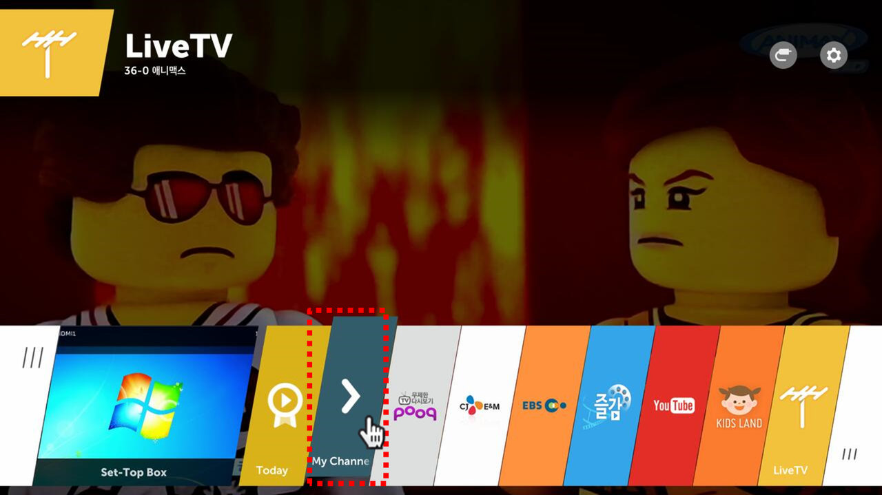 Нажмите кнопку канала или кнопку Колесико (OK) на пульте ДУ для переключения каналов. Каналы можно добавлять в непрерывном режиме. Добавленные каналы можно перемещать/удалять таким же способом, каким можно управлять приложениями. Для доступа к каналу из других приложений выберите любой канал, добавленный в раздел My Programmes.