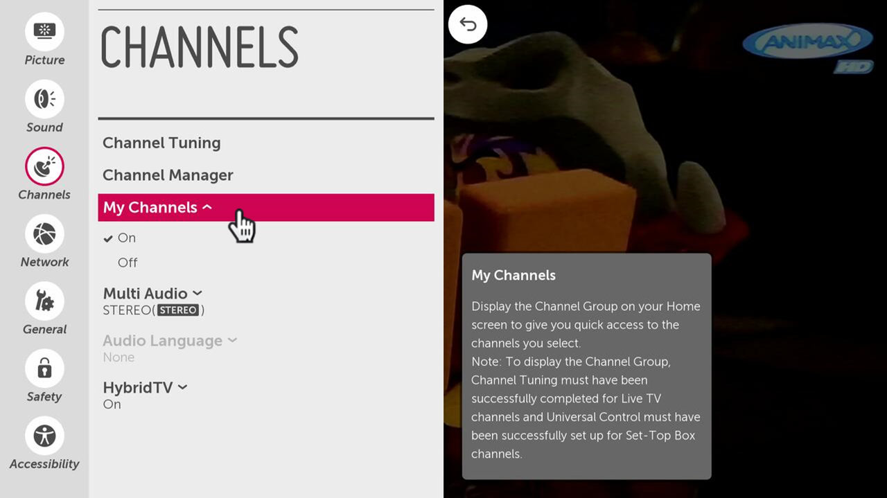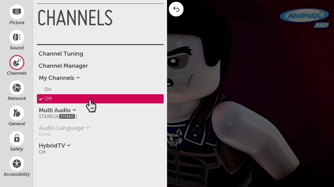 Если вы не хотите использовать эту функцию, щелкните Выкл. в разделе Настройки - Расширенные - Каналы - My Programmes.