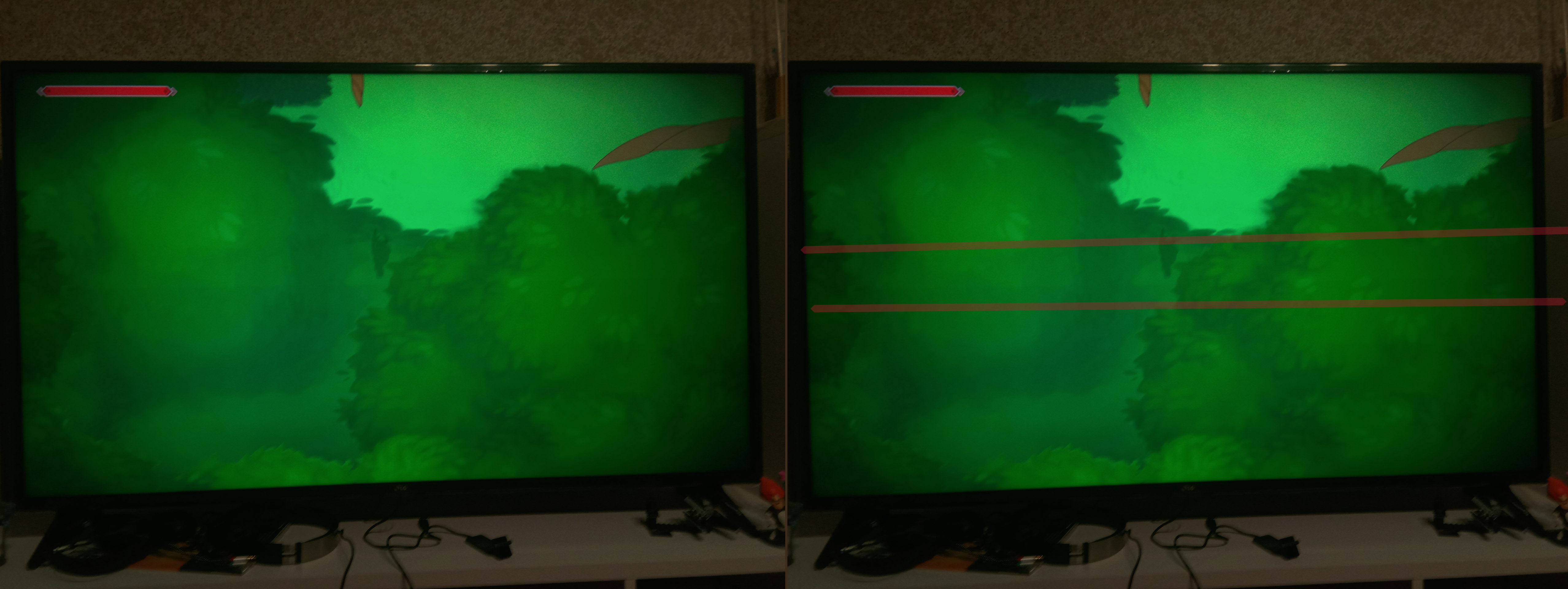 Добрый лень! Столкнулся с такой проблемой - по горизонтали от белых и некоторых темных рамок расходятся полосы, они не остаются и не статичны. Двигаются так же по горизонтали за плашками. По началу думал программно в Кинопоиске и т. п. приложениях, но потом заметил и в меню ПС4 (на синем фоне очень заметно) и остальных приложениях и в прог. меню самого телевизора, где имеются рамки-обрамления. По итогу "шлейф" по горизонтали от рамок - на данный момент везде, он двигается за ними, но не статичен это точно. В видео и просто заставках, нормально все.