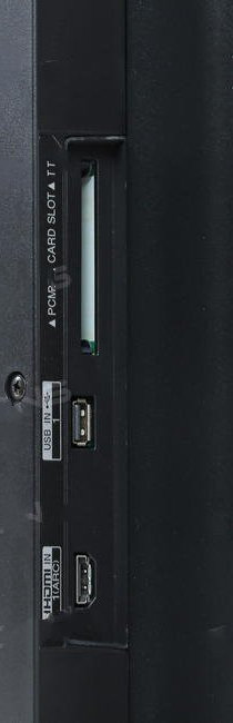 Боковая панель оснащена одним HDMI входом (с поддержкой технологии ARC) и одним разъемом USB 2.0. Кроме того на борту имеется встроенный Wi-Fi и слот условного доступа CI.
