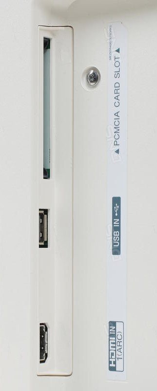 Боковая панель оснащена одним HDMI входом (с поддержкой технологии ARC) и одним разъемом USB 2.0. Кроме того на борту имеется встроенный Wi-Fi и слот условного доступа CI.