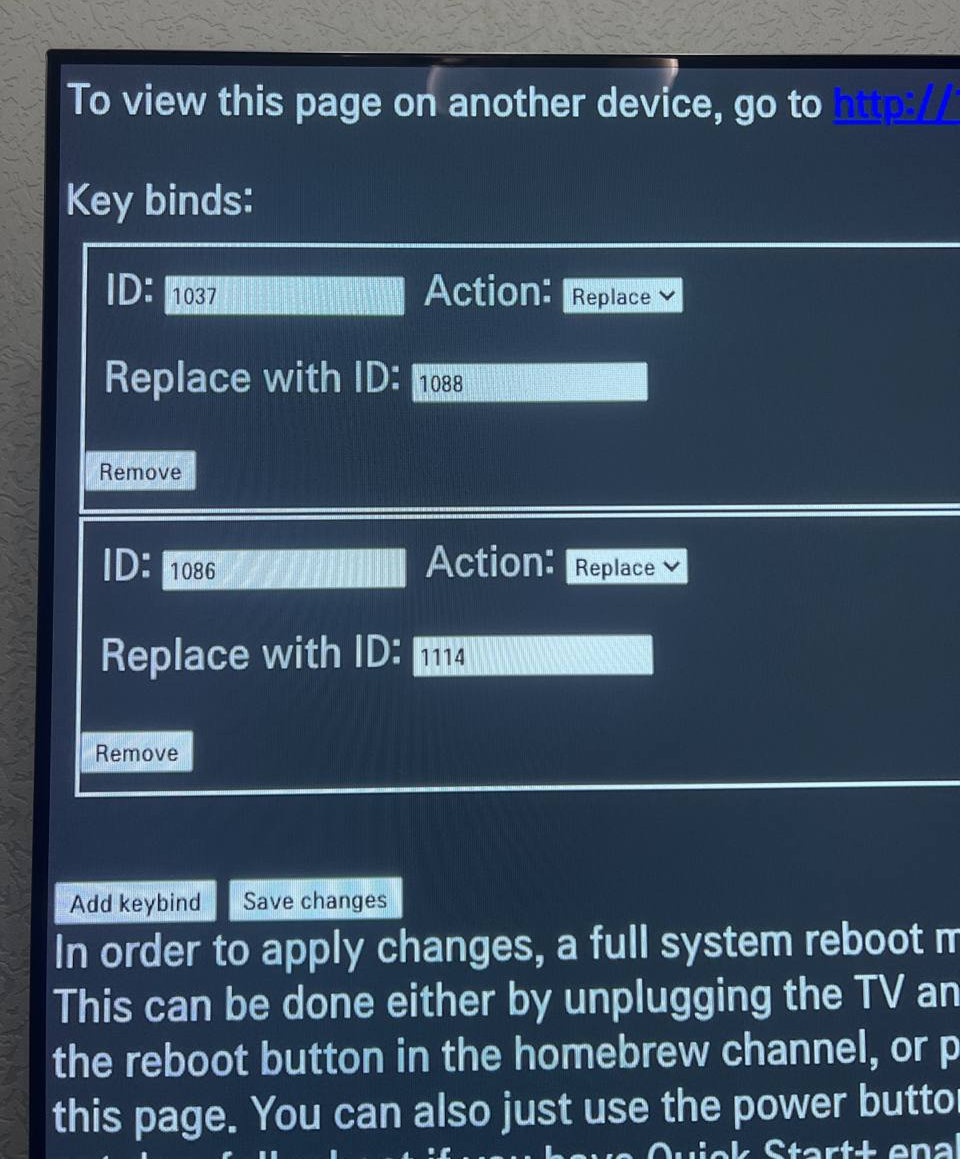 Для перезагрузки можно отключить телевизор от сети и снова включить его, использовать кнопку Reboot на Homebrew Channel или нажав кнопку перезагрузки странице приложения. Также можно просто использовать кнопку питания на пульте дистанционного управления, но это не приведет к полной перезагрузке если в настройках телевизора включен Быстрая загрузка+.