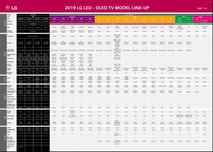 Сравнительная таблица моделей телевизоров LG 2019 года: