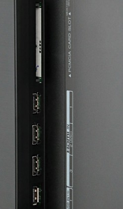 Боковая панель оснащена тремя входами HDMI v2.0 (один из которых совместим с ARC), одним разъемом USB 2.0 и слотом условного доступа CI+. Кроме того на борту имеется встроенный Wi-Fi с высокоскоростным методом соединения 802.11ac и адаптер Bluetooth.