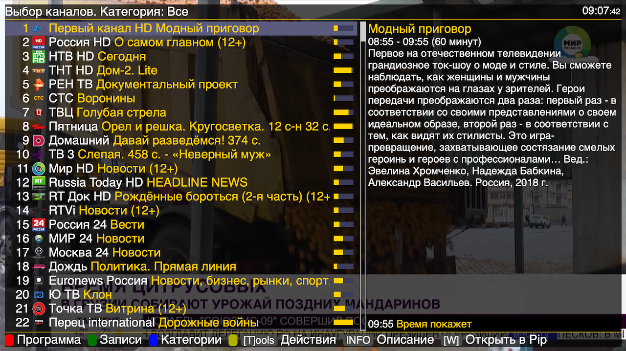 появляется острое желание видеть в списке с каналами рядом не описание передачи, а EPG телеканала, с возможностью ползать по архиву.
