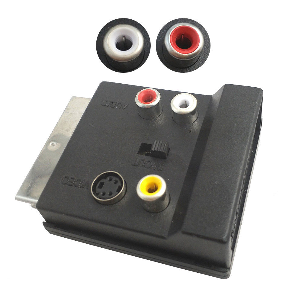 и просто 3RCA to 3RCA кабели, подключенные к адаптеру, не смогли вывести видео на ТВ. Зато копеечный адаптер SCART to RCA с переключателем out-in