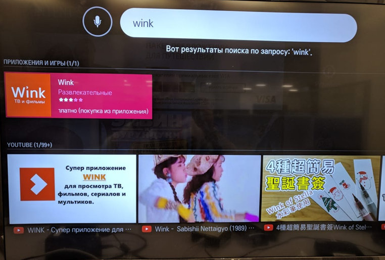 Выберите приложение Wink и нажмите кнопку ОК или Ввод.