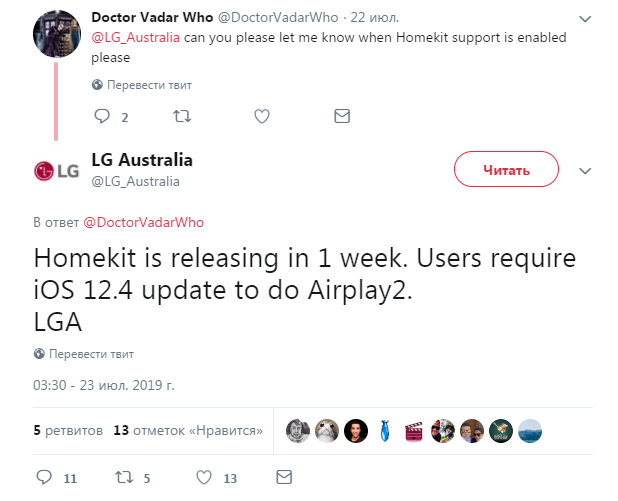 Телевизоры LG начнут поддерживать HomeKit и AirPlay 2 через неделюАвстралийская служба поддержки LG опубликовала