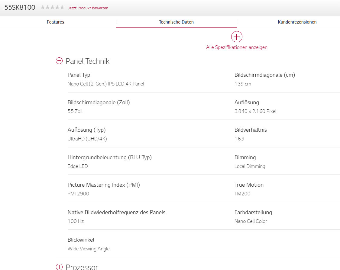 Например модель 55SK8100 - указан только True Motion 200 (улучшение четкости динамического изображения). А в родственной модели прошлого года 55SJ810v указан еще индекс PMI.
