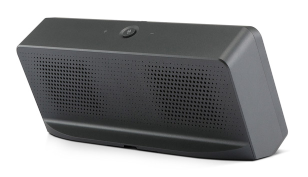 Особенно удобно, что колонка не собирает пыль и отпечатки пальцев, и это благодаря тому, что пластик матовый. На нижней грани есть прорезиненная вставка, способствующая улучшению устойчивости гаджета. В углублении спрятан разъем для подключения кабеля питания, механическая кнопка Reset и свободное пространство, где можно спрятать провод.